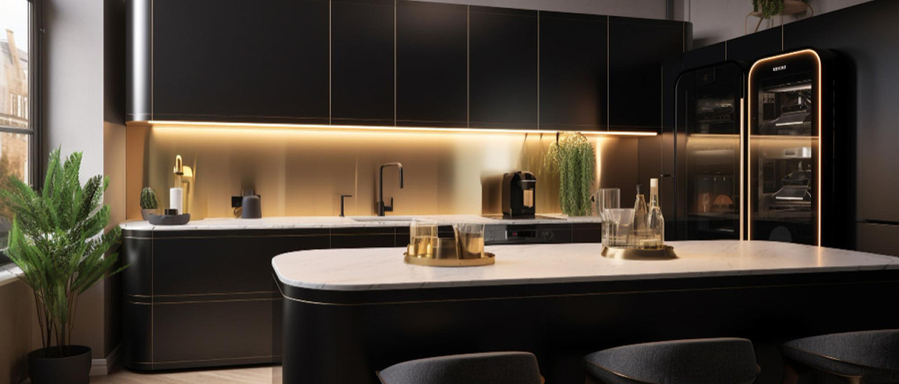 Svarīgs aspekts ir darba virsmas apgaismojums. Parasti ar centrālo gaismu vien nepietiek. Ļoti labi darbojas LED lente, kas uzstādīta zem sienas skapīšiem. Tā nodrošina vienmērīgu, virzītu gaismu bez ēnām — tieši to, kas nepieciešams gatavošanai.