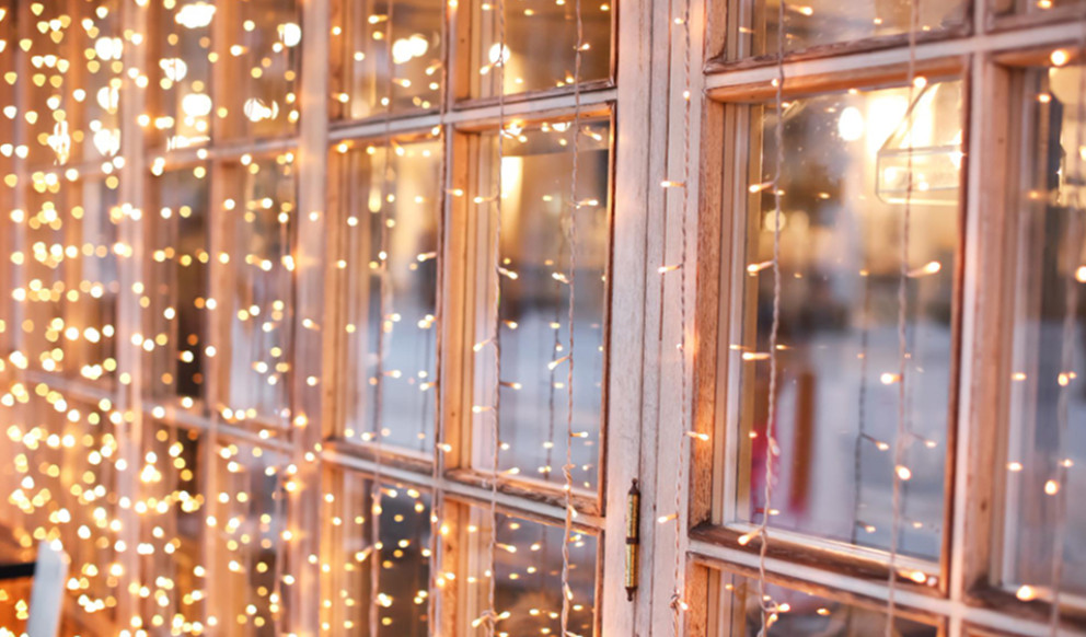 Panorāmas vai franču logi ir īsts atradums gaismas dizaina realizēšanas iespējās. Šeit īpaši efektīgi izskatās virtene-aizkars: vertikālas virtenes ar simtiem mazu gaismiņu rada īstas skatuves sajūtu.