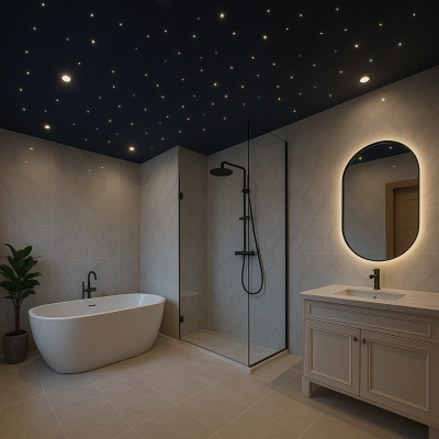 LED "zvaigžņotās debesis" tiek izmantots ne tikai kā apgaismojums, bet arī kā dizaina elements, kas rada noskaņu un uzsver interjera individualitāti.