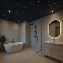 LED apgaismojums "zvaigžņotās debesis" ir mūsdienīgs risinājums īpašas atmosfēras radīšanai interjerā. Griesti pārvēršas par nakts debesu imitāciju ar mirdzošiem gaismas punktiem, kas piešķir telpai mājīgumu un stilu. Šāda sistēma ir piemērota uzstādīšanai guļamistabā, viesistabā, bērnu istabā, mājas kinoteātrī, SPA zonā, restorānā vai atpūtas telpā.