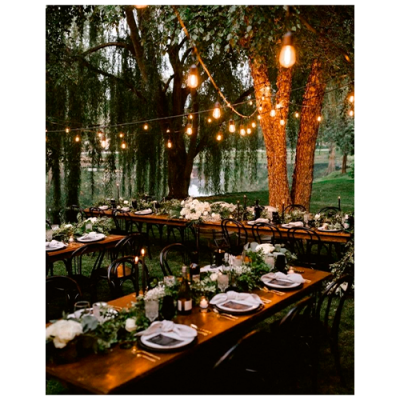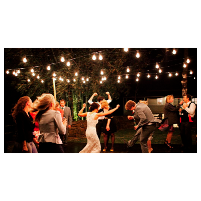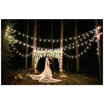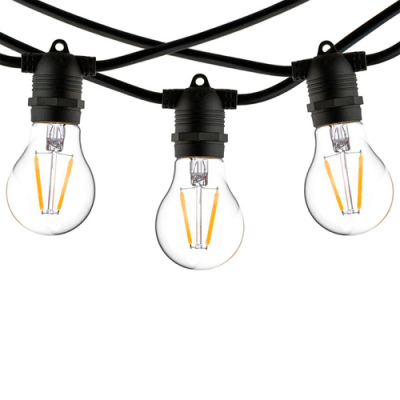 LED āra dārza 10m virtene dārzam un terasēm E27 spuldzēm, 20 patroni spuldzēm, solis 50 cm VISIONAL / 03-633 / Dekoratīva iekštelpu un ārtelpu virtene E27 spuldzēm / 10 metri / Integrēts cokols / Melns vads