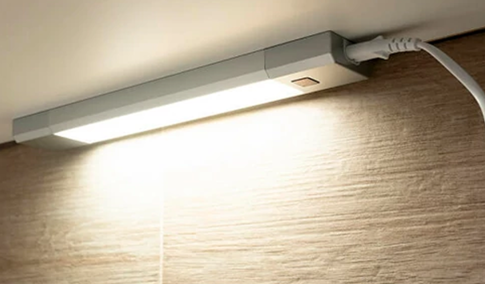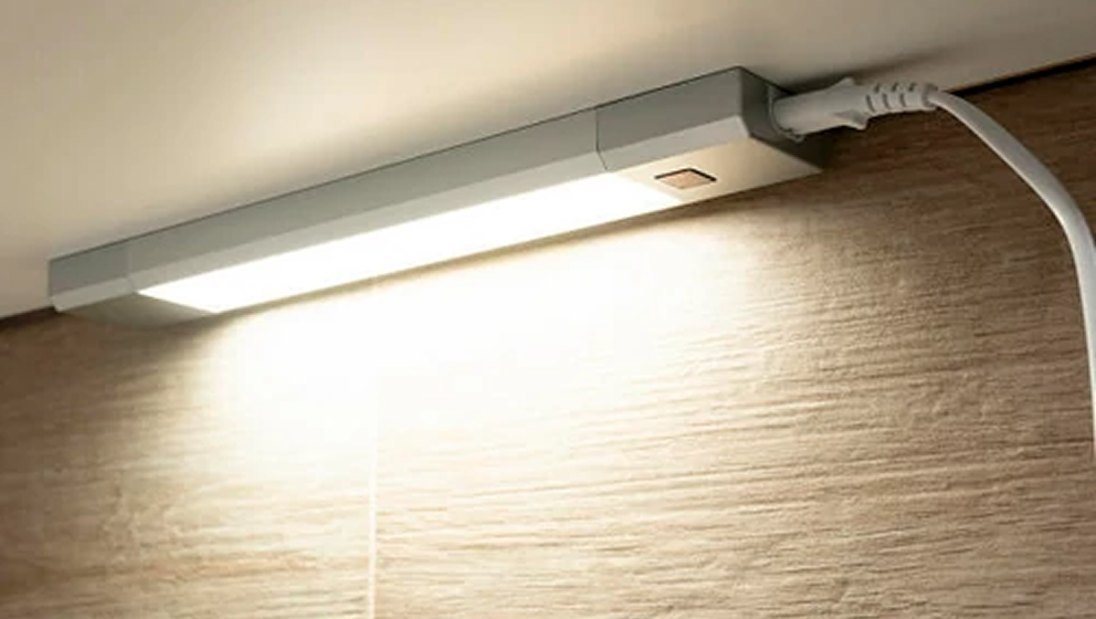 Это вытянутый корпус с равномерной LED-подсветкой. Свет мягкий, не слепит, ложится ровно. Визуально – просто и без наворотов, что делает его универсальным. Подходит как для офиса, так и для кухни или подсветки в шкафу.