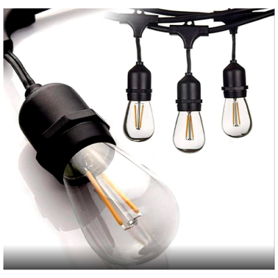 LED уличная гирлянда под патрон Е27 идеально впишется в дизайн любого помещения, сада, террасы или беседки и привнесет уют, праздник и радость в ваши вечера и ночи. Подключение к электросети (розетка 220В). Гирлянду можно соединять до 100 метров (максимальная нагрузка 5Вт/м; на 100м метров максимальная нагрузка 750 Вт). Данная гирлянда предназначена только для LED ламп. Лампочки в стоимость не включены.
